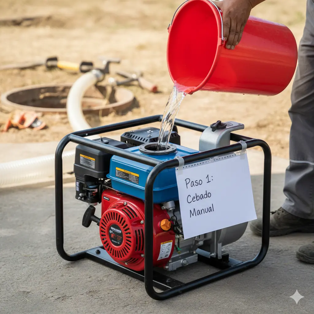 Si tu motobomba de gasolina o diésel arranca correctamente pero no succiona agua, o tarda una eternidad en hacerlo, es casi seguro que te enfrentas a un problema de cebado.