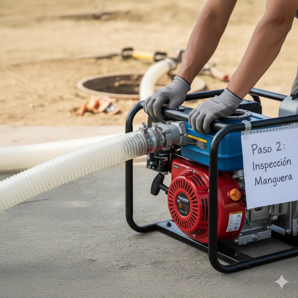 Tipo de Manguera: Asegúrate de que estás usando una manguera de aspiración (rígida o reforzada con espiral). Una manguera de descarga (plana, de lona) colapsará por el vacío y no funcionará.
