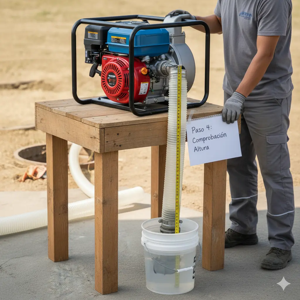 Acción: Mide la distancia vertical desde el eje de la bomba hasta la superficie del agua que intentas bombear.
